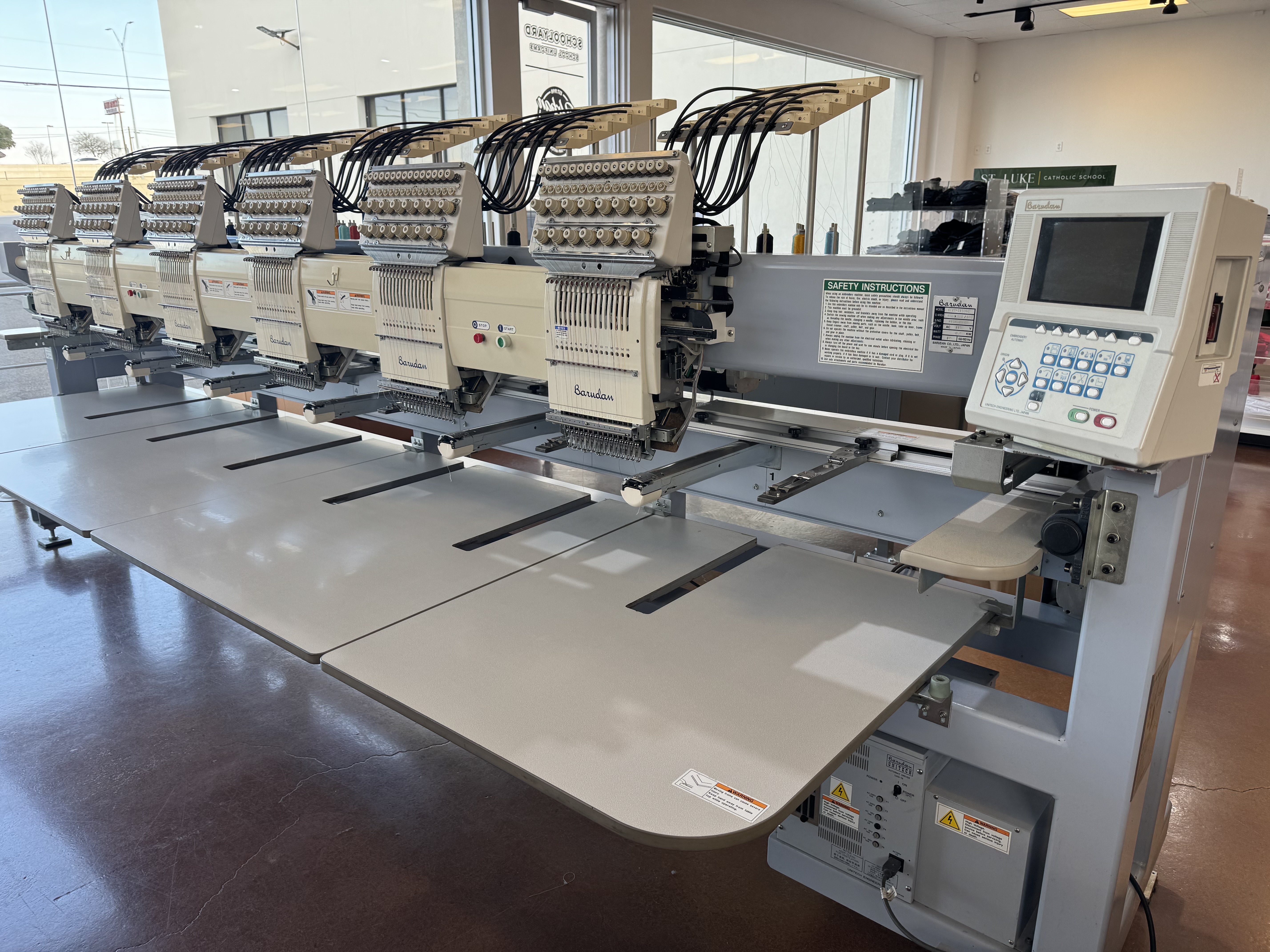2) 2006 BARUDAN 6-HEAD EMBROIDERY MACHINES $22,000 each Pristine Condition By urban6419 on Mar 02, 2026 Brand: Barudan Model: BEVY-Z1506C Type: Industrial/ Commercial Multi-Head Embroidery Machine Machine Specs San Antonio, TX, United States