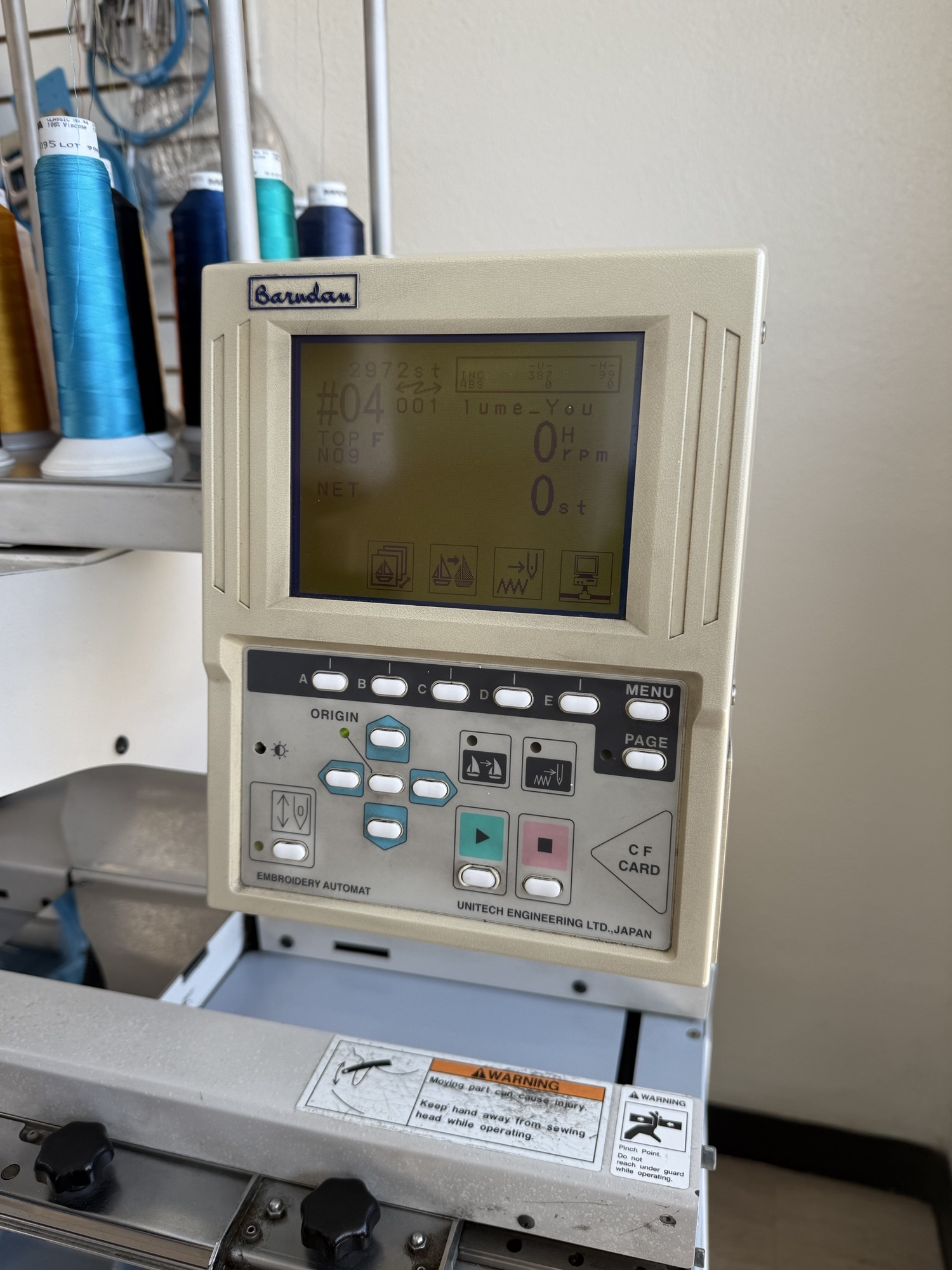 2019 Barudan BEKY-S1506CII — 6-Head 15-Needle Commercial Embroidery Machine By bryanbrews on Apr 22, 2026 2019 Barudan BEKY-S1506CII Model: BEKY-S1506CII Sewing Field: 450×520/520 (Wide Field) Heads: 6 Needles: 15 Little Falls Township, NJ, United States