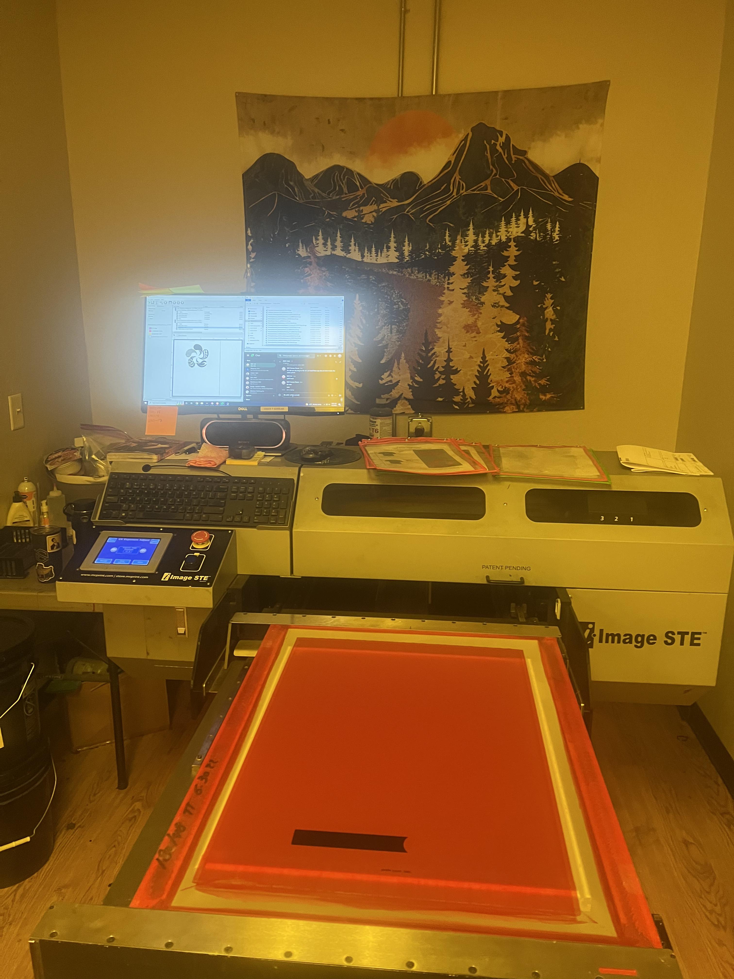 We are selling our 2-M&R I image STE II computer to screen exposure unit. Still in production today and works like a champ. This baby can crank out up to 300 screens per shift with the 3 print heads and fast exposure time. Works extremely well with the M&R tri-lock system and would highly recommend this machine for anyone looking to make the jump to cts.