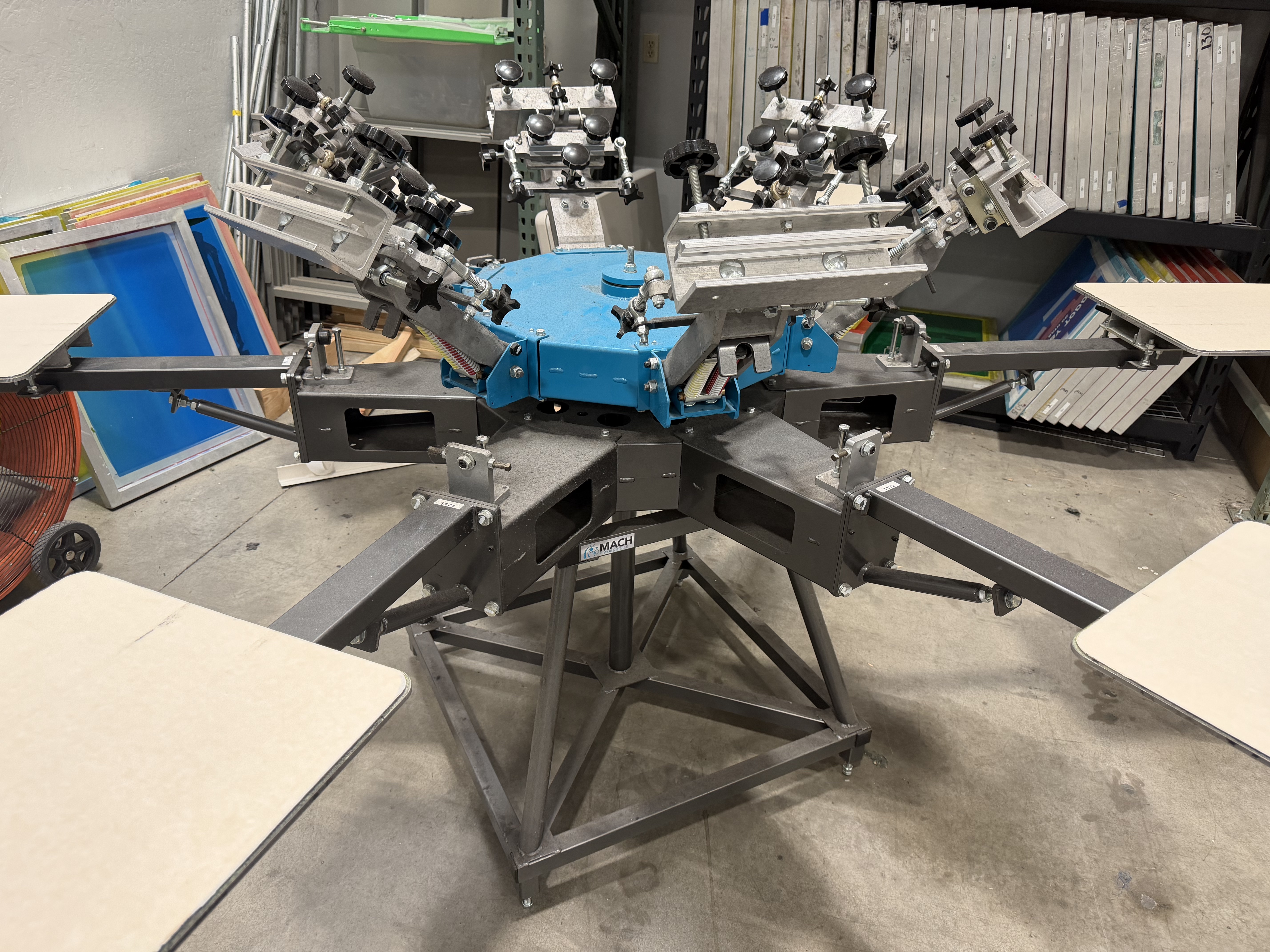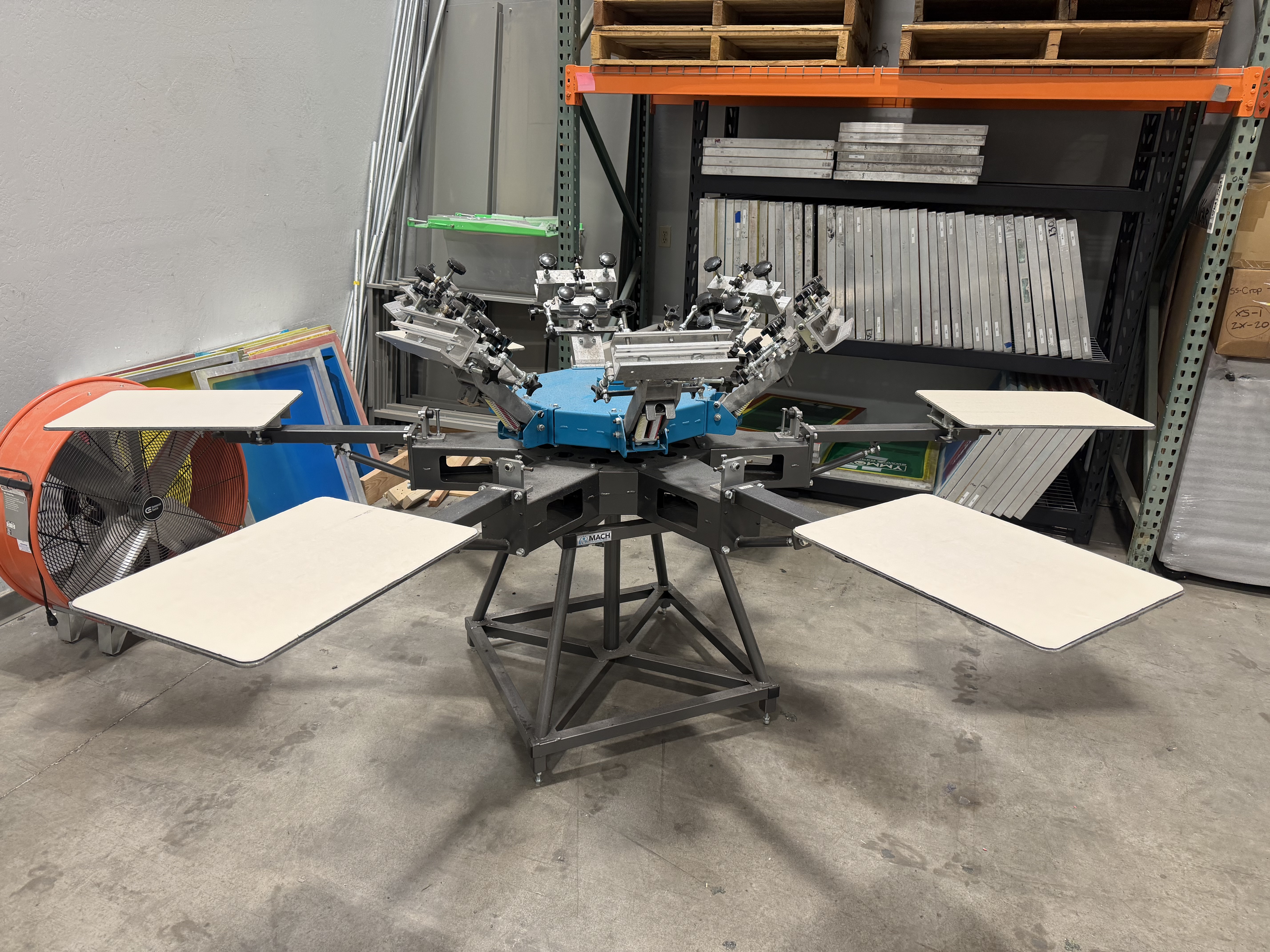 Like new, barely used Workhorse Mach 6/6 manual screenprinting press. This press is a solid higher end manual press. Great micro registration. Bought new in December of 2023. Paid $7500