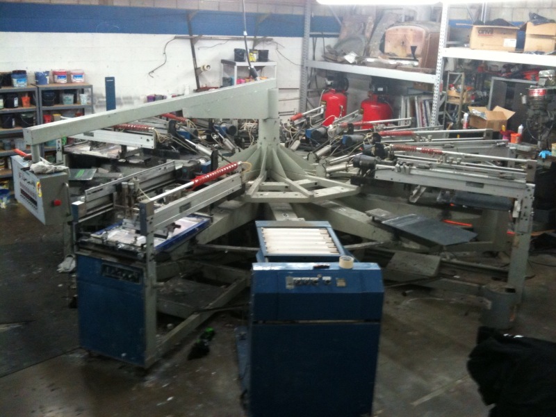 Eight color American Centurion Automatic Screen Printing Press for sale. 30 in" jumbo print stroke. Comes with two sets of pallets (standard and 18x26 in" ) Press is assembled and currently in use. 2 heads are currently out of commission. $10000.00 obo Call Eric @951-233-4392