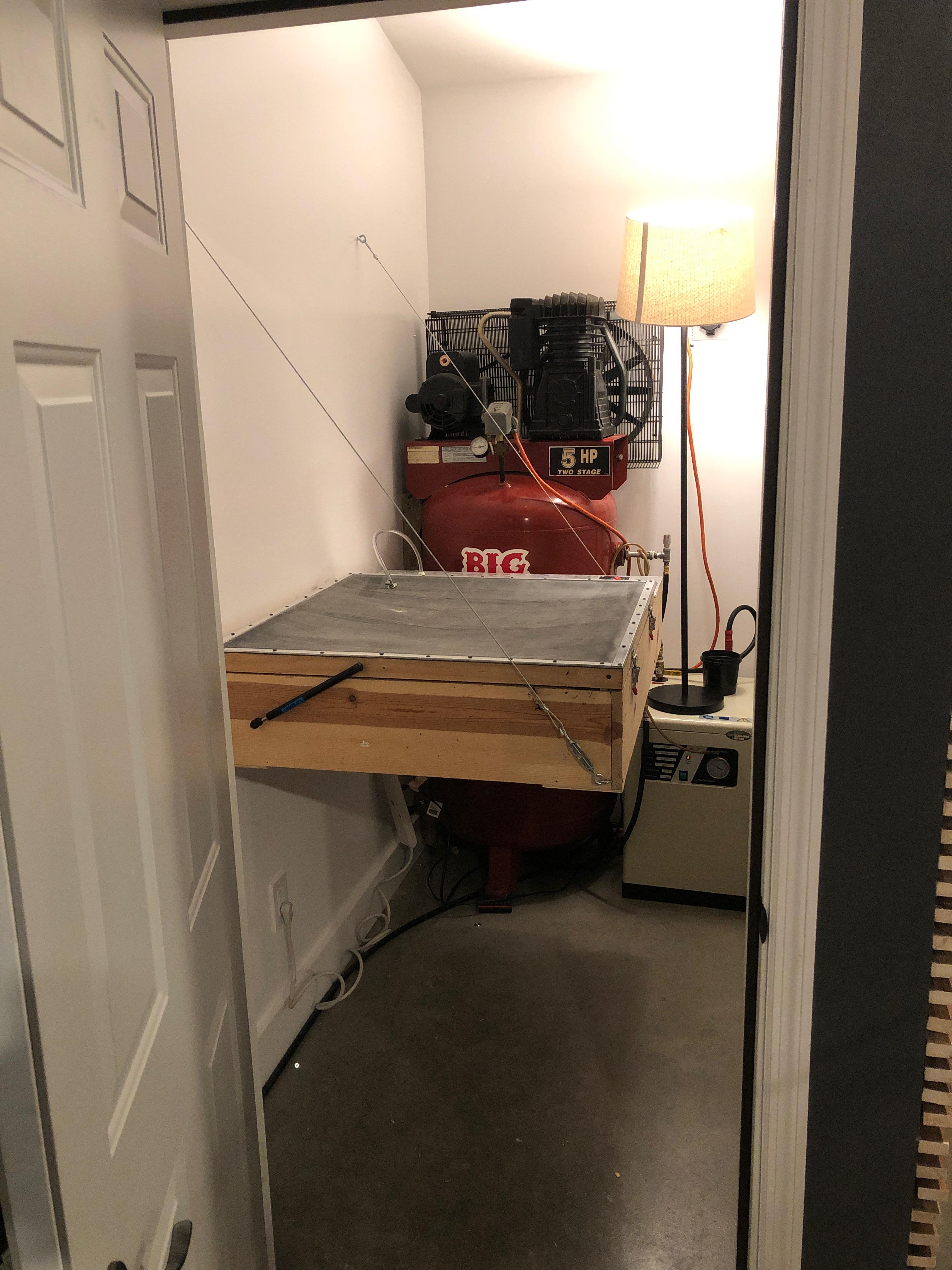 No issues. Clean. Works great, just upgraded to a bigger press. This press will fit through a 36" door and has an 8'6" overall footprint. It does not take up much room at all. It is a great starter automatic press for someone looking to go from manual printing to automatic. You can use 20x24 screens. It was a game-changer for our business. Very easy to use. Comes with 15x15 Rapid Wave flash dryer.