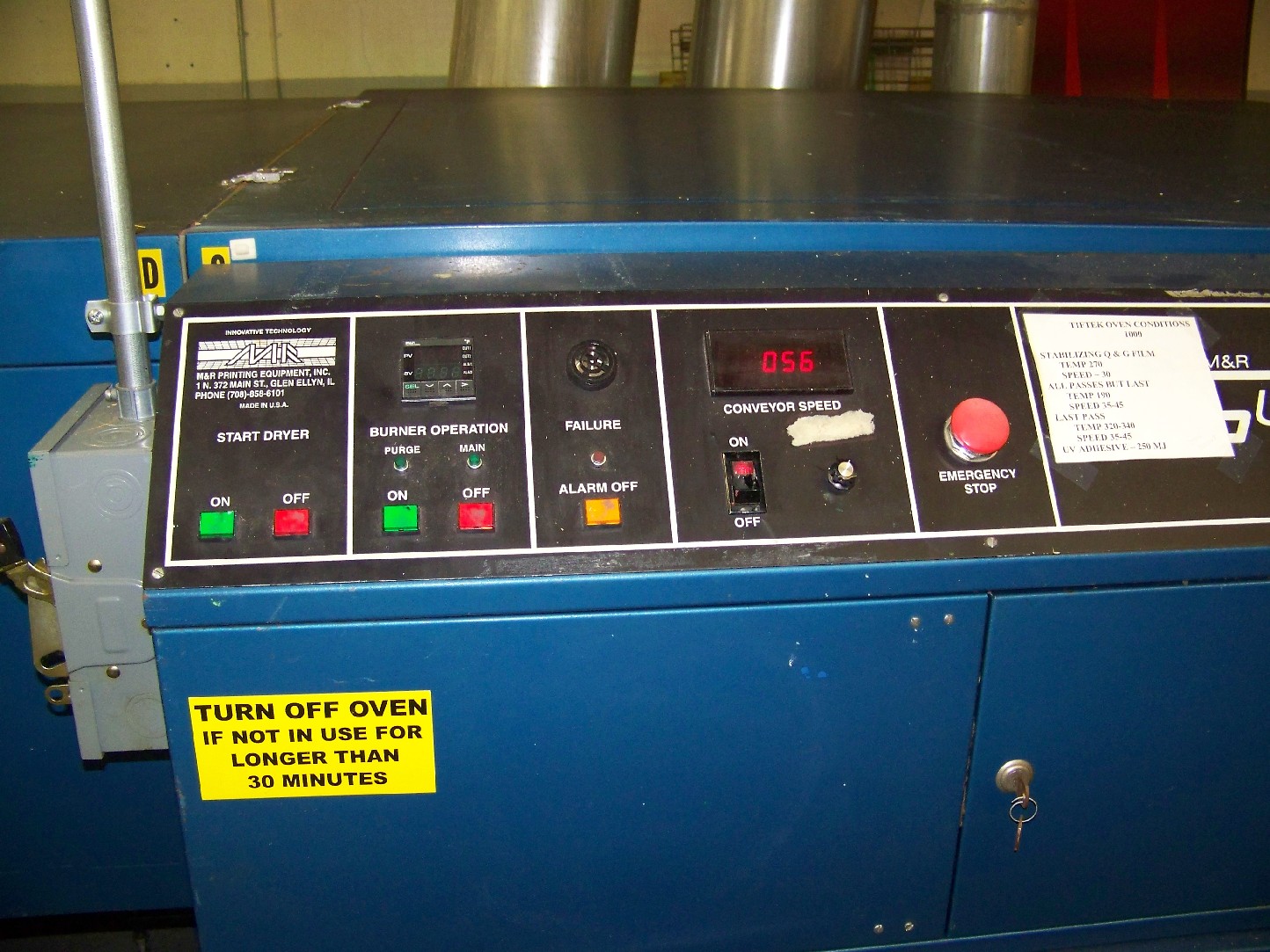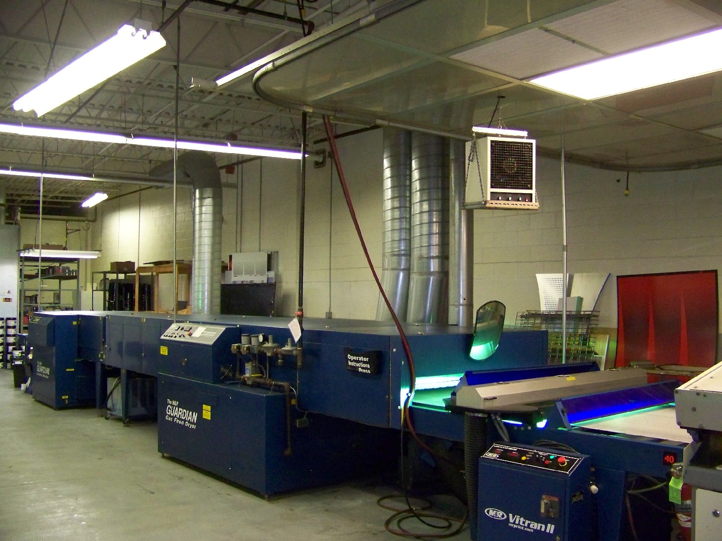 We have available a 40"x56" M&R Eclipse w/ automatic takeoff & 48" Vitran UV Dryer for sale.
