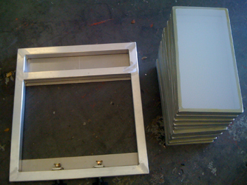 Can do up to 25 x 36 frames. Also has rack for squeegies and floodbars. Working perfectly. Downsizing shop and have no room for it.