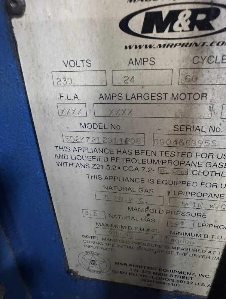 M & R Sprint 2000 By norrismac on Dec 11, 2025 M & R Sprint 2000 - 72' wide belt - 8' x 12' (Heat Section) x 12' out Encinitas, CA, United States