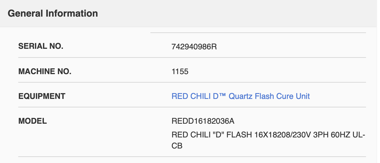 RED CHILI "D" FLASH 16X18208/230V 3PH 60HZ By ClassB on Dec 11, 2025 Used Flash Cure unit - 220 3-phase unit with new-ish bulbs. Crating and shipping can be arranged. Tampa, FL, United States