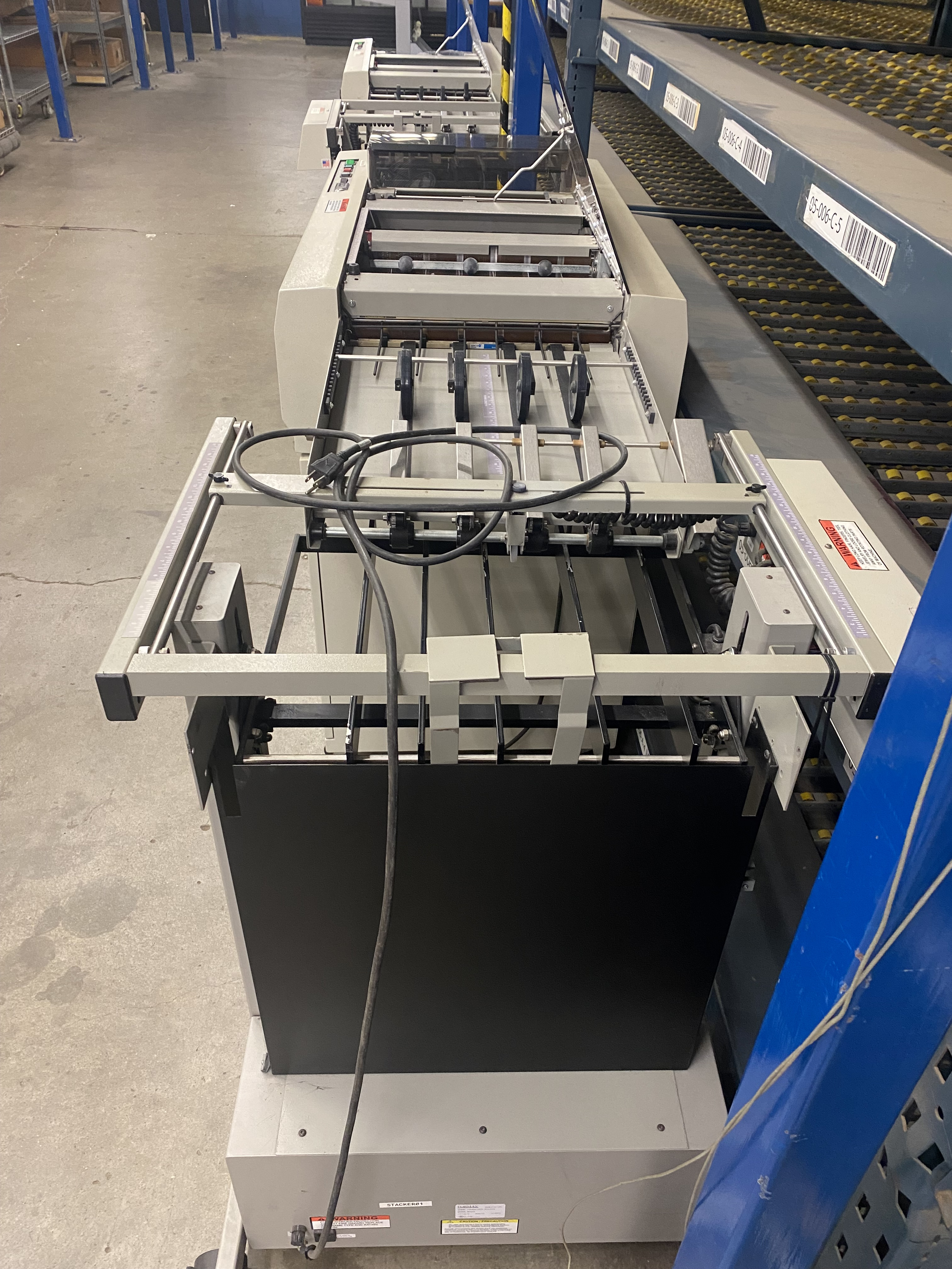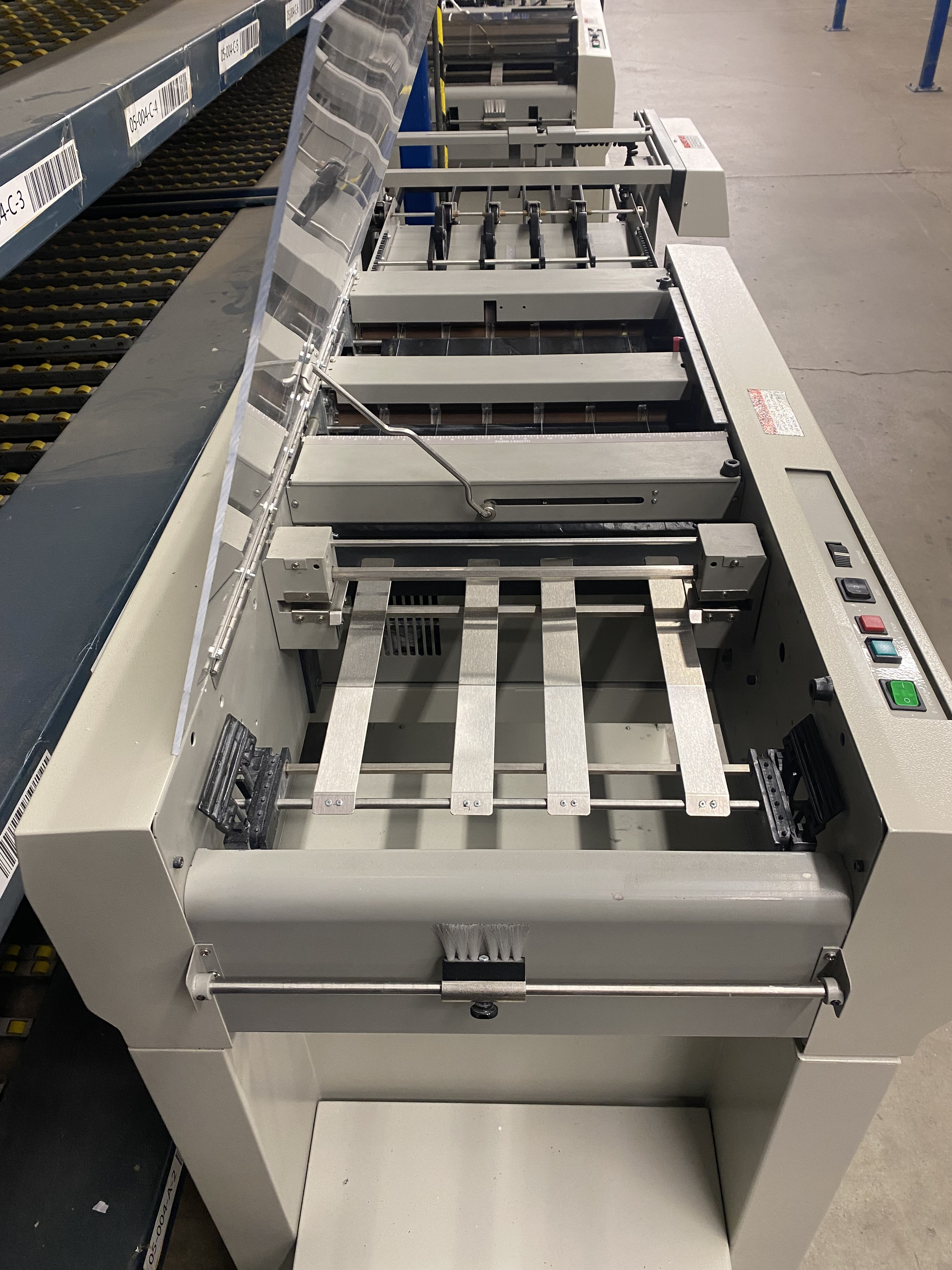 • Includes: slitters, tractor feed, safety interlocks, cabinet, and conveyor
