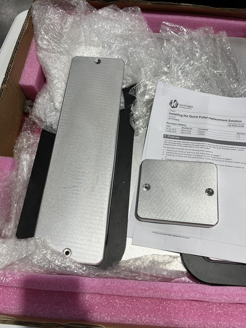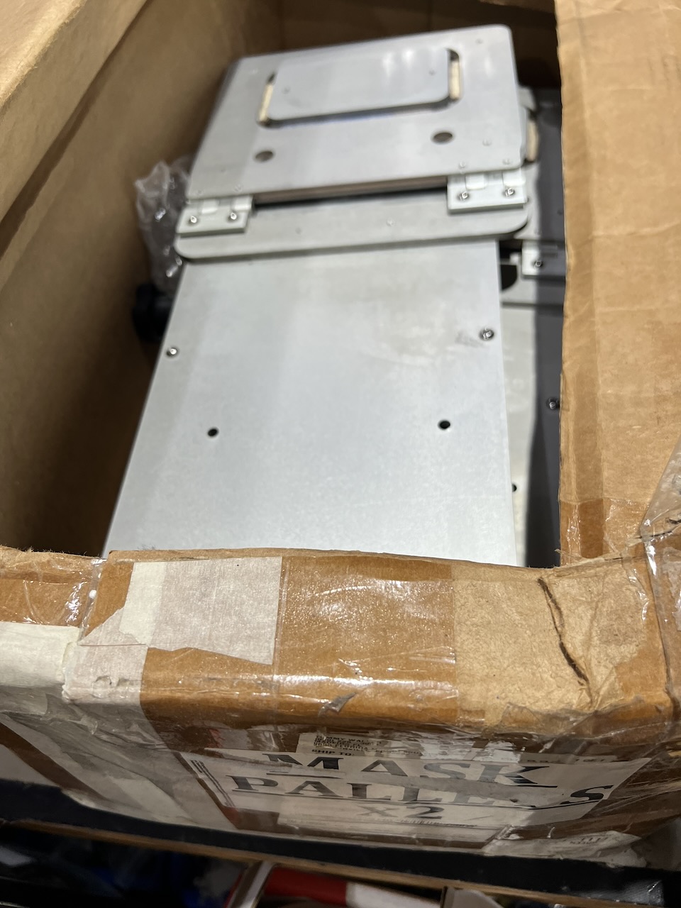 set of 5 pallets from a Kornit Storm HD Printer. 2 mask pallets, 2 medium pallets, and a sleeve pallet Shipping can be arranged.