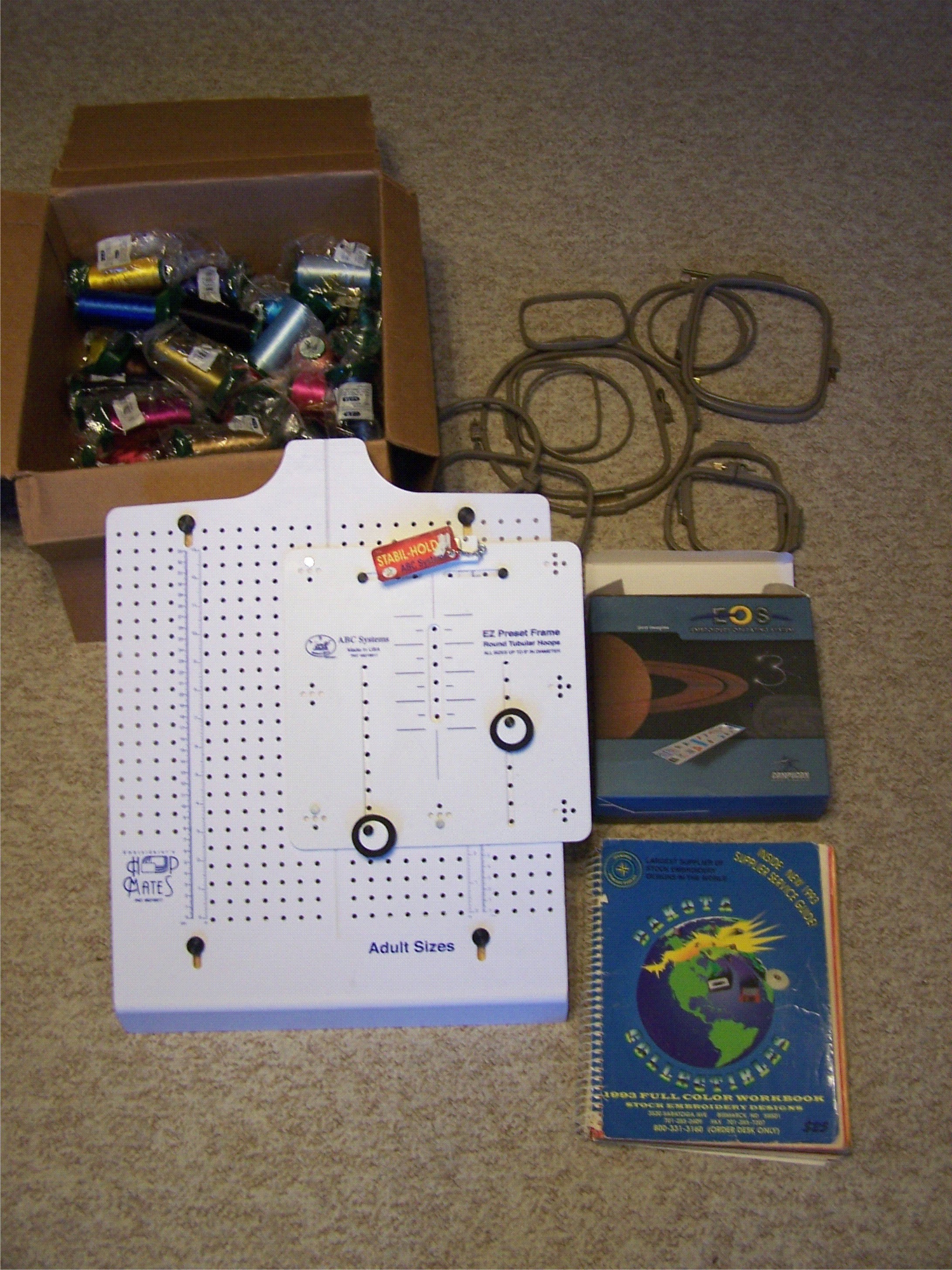 I have a like new commercial Toyota 830 embroidery machine that is basically new. Does 9 diferent colors. I bought this for my wife to start a home business. Well it was only used a few Christmas's to do some family gifts. It has been in the study of our home since we got it. I wound up spending over 18,000 for all this stuff. There is the machine, many different size hoops mostly two of each, The EOS ditigizing softwear program with a security key to run the designs to machine, A couple of books of Dakota designs probaly a 1000 or more, Ncaa college ditigized designs. Box of new thread of many colors, Boxes of bobbins, new rolls of different backing, teat squares. A brand new Hoop mates system for adult and kid shirts and sleeves. Probaly some other odd and ends. Just want to move out of the way. I will take the first $5500.00 for everything. You can see it run. a perfect heavy duty machine. Call me at 843-616-1087. Pick up only. Serious inquires only please.