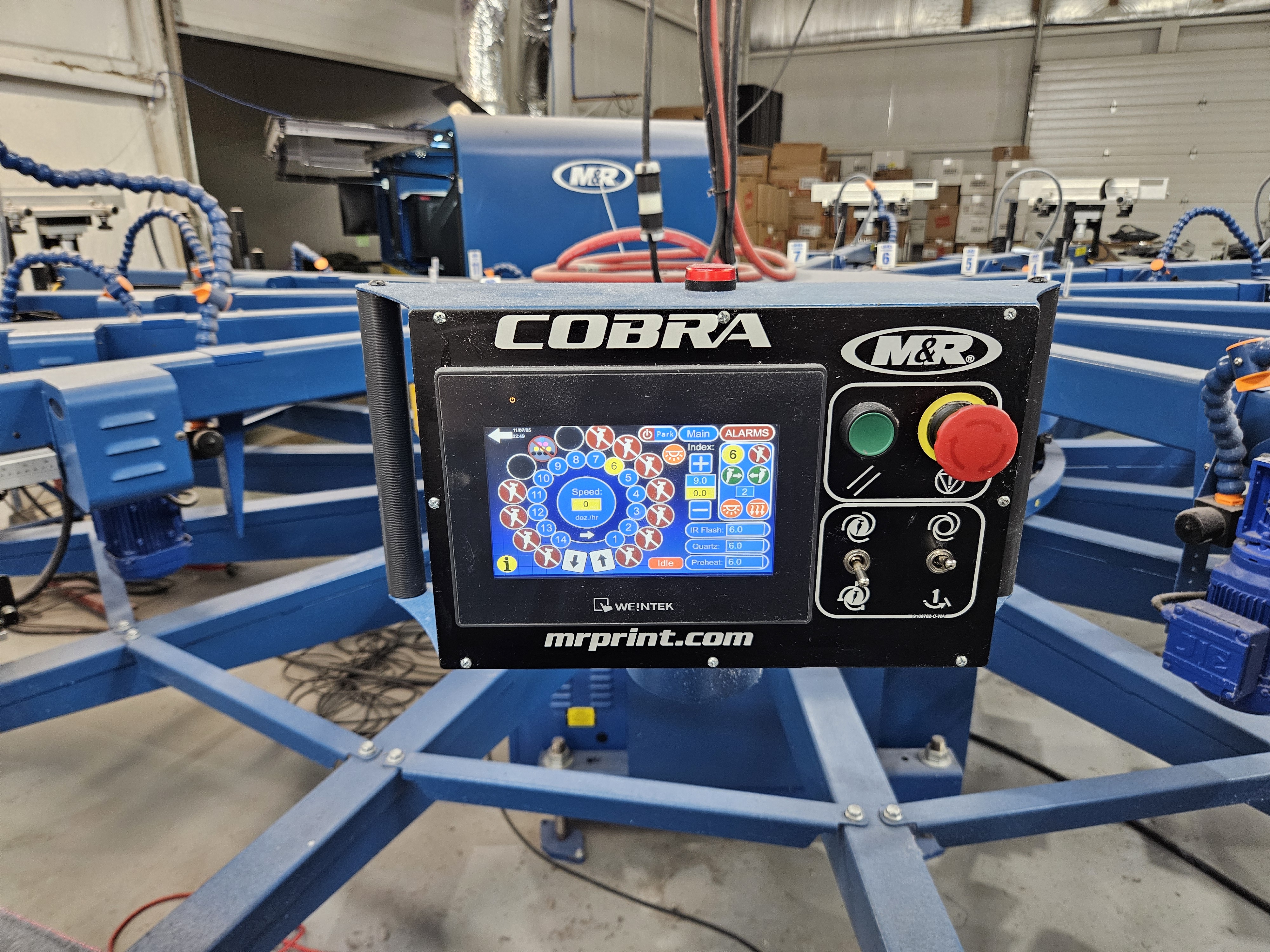 M&R Cobra 14 Color, 16 Station with Tri-Sync Tri-Loc System & M&R Digital Squeegee DS-4000-(Comes with computer, monitor, Caldera RIP software, M&R digital squeegee print software), 2020, 22,693 Impressions, Comes with 16) 15" x 22" Platens. Video Available, Located in AR $149,000.00 http://thorntonequipment.com/index.php/product/mr-cobra-14-color-16-station-with-tri-sync-tri-loc-system-digital-squeegee-pkg-deal/