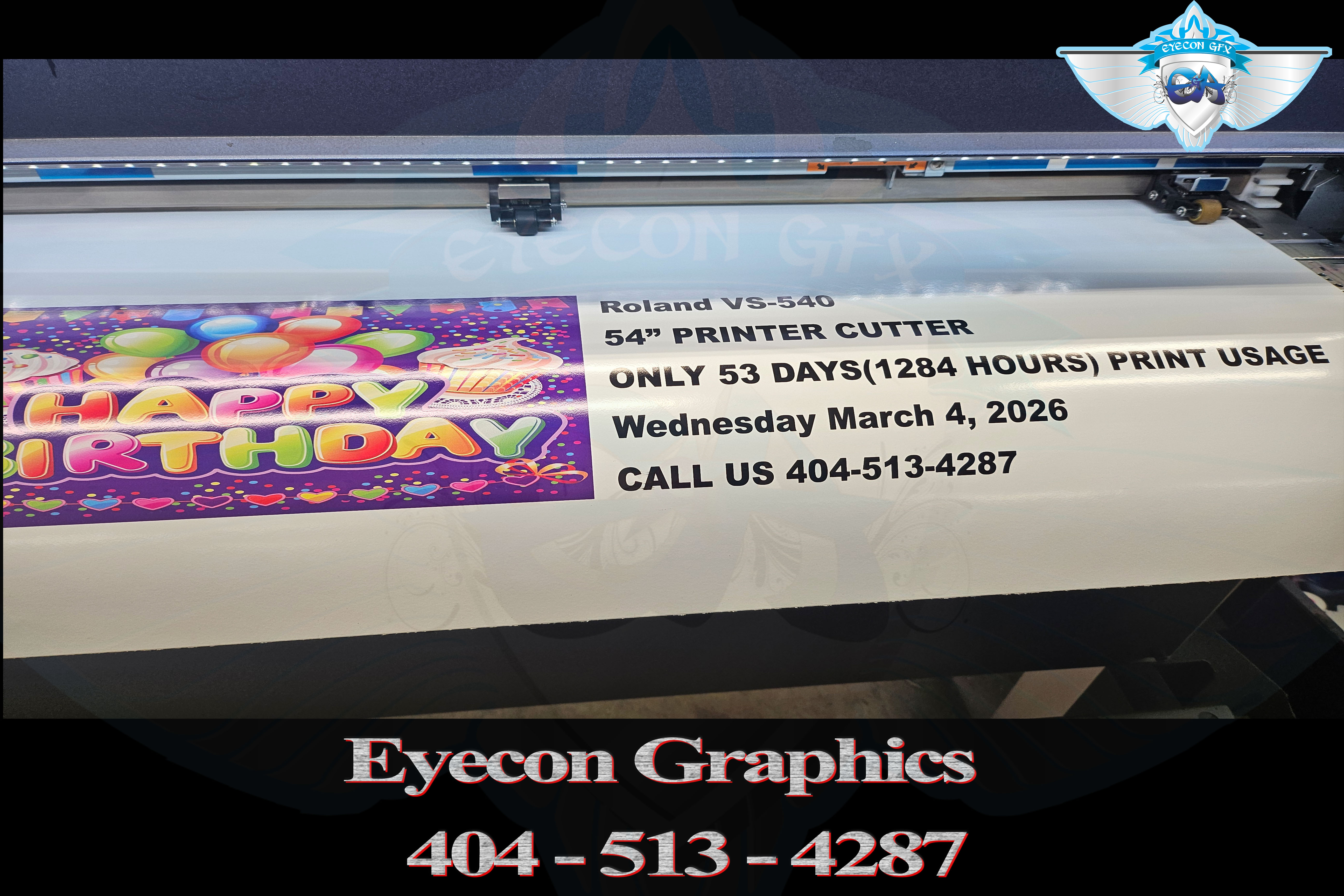 Roland VS-540 eco solvent printer-cutter in great working condition. Start your business today! Currently printing and ready to go! Prints and cuts up to 54” wide media!