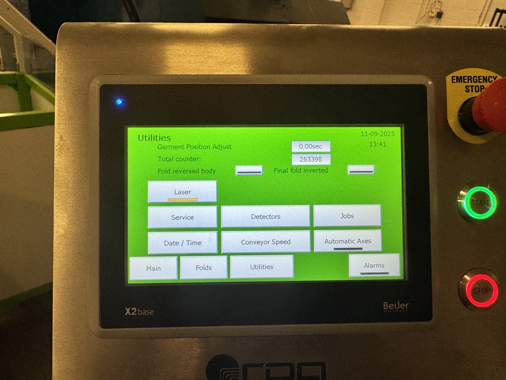 2019 model bought in 2020. Doesn’t fit our operations and get used enough. Everything works on the unit. Folds tees, fleece, long sleeve, each garment can have a different setting to dial it in. Unit folds, then transfers to a stacking belt. Counter is at 263,398