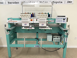 Twelve needle, two head used embroidery machine.